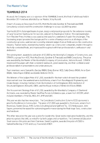 14 | Autumn 2015 | The Journal of the Worshipful Company of Constructors