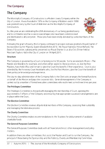 22 | Autumn 2015 | The Journal of the Worshipful Company of Constructors