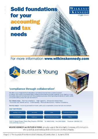 WILKINS KENNEDY and BUTLER & YOUNG proudly support the Worshipful Company of Constructors who gratefully acknowledge their contribution s to the Company. Page 2 | The Journal of the Worshipful Company of Constructors | Autumn 2018