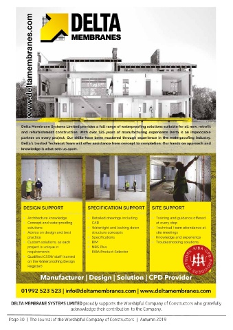 DELTA MEMBRANE SYSTEMS LIMITED proudly supports the Worshipful Company of Constructors who gratefully acknowledge their contribution to the Company. Page 30 | The Journal of the Worshipful Company of Constructors | Autumn 2019