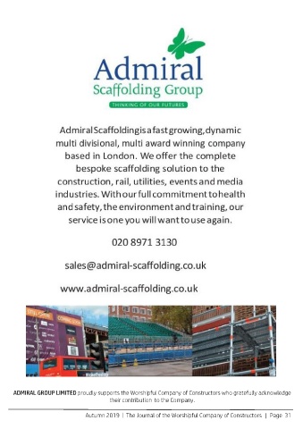 ADMIRAL GROUP LIMITED proudly supports the Worshipful Company of Constructors who gratefully acknowledge their contribution to the Company. Autumn 2019 | The Journal of the Worshipful Company of Constructors | Page 31
