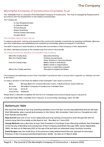 Page 12 | The Journal of the Worshipful Company of Constructors | Autumn 2022